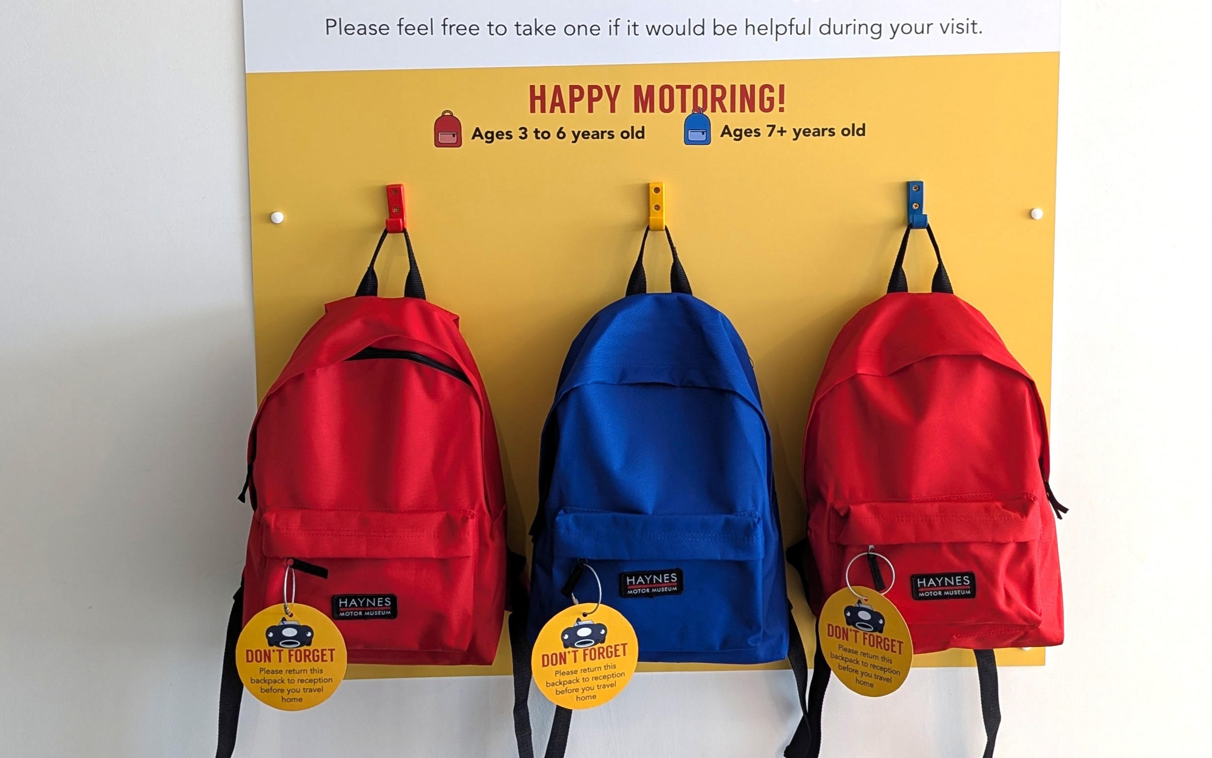Visitors are welcome to borrow a backpack free of charge during their visit.